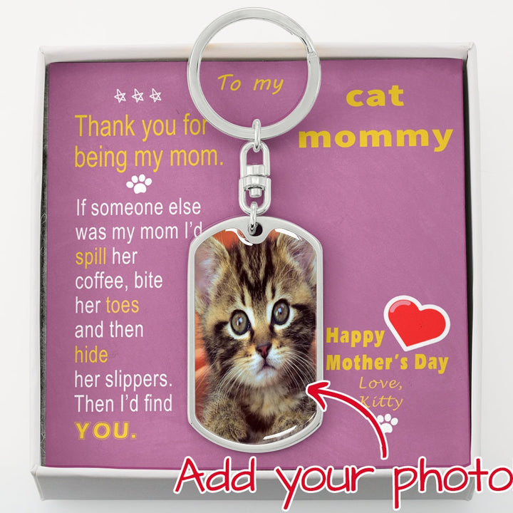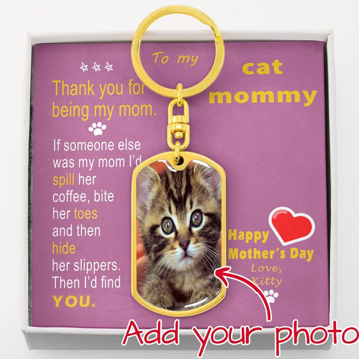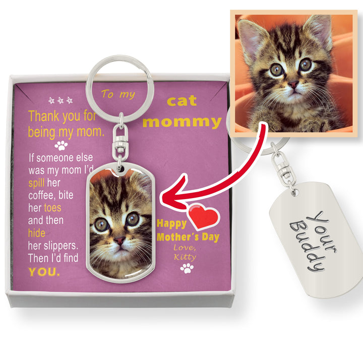 To Cat Mom - Thank you - from Kitty Cat - Custom Photo Dog Tag Keychain