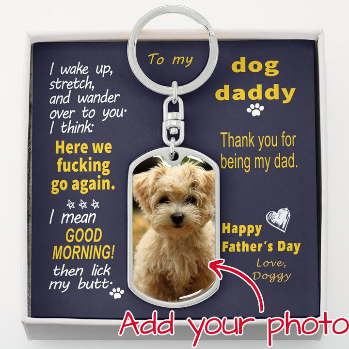 To Doggy Dad - Here we go again - from Doggy - Photo Dog Tag Keychain